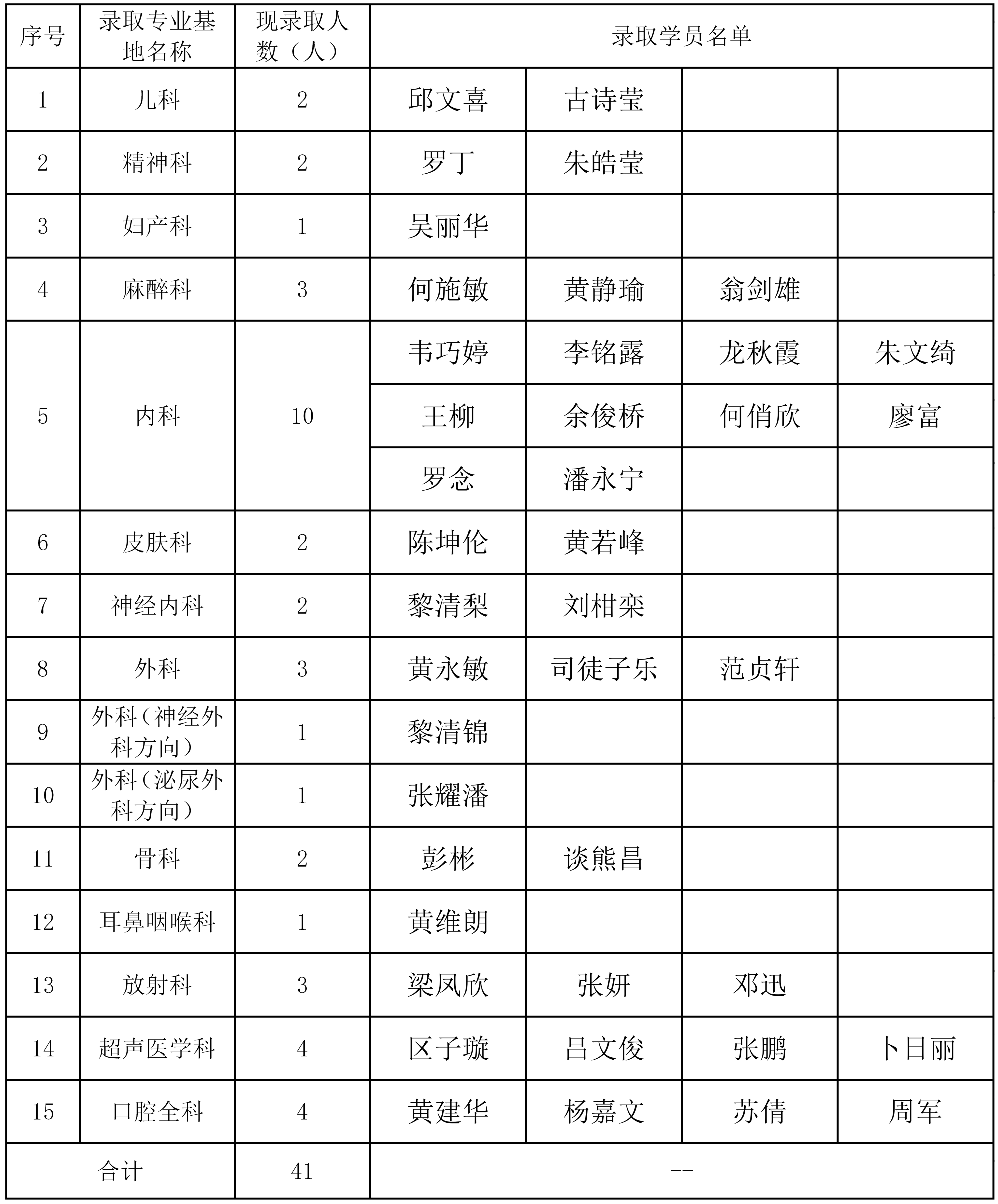 现将阳江市人民医院住院医师规范化培训基地2026年第一批住培学员招生录取结果公示如下: