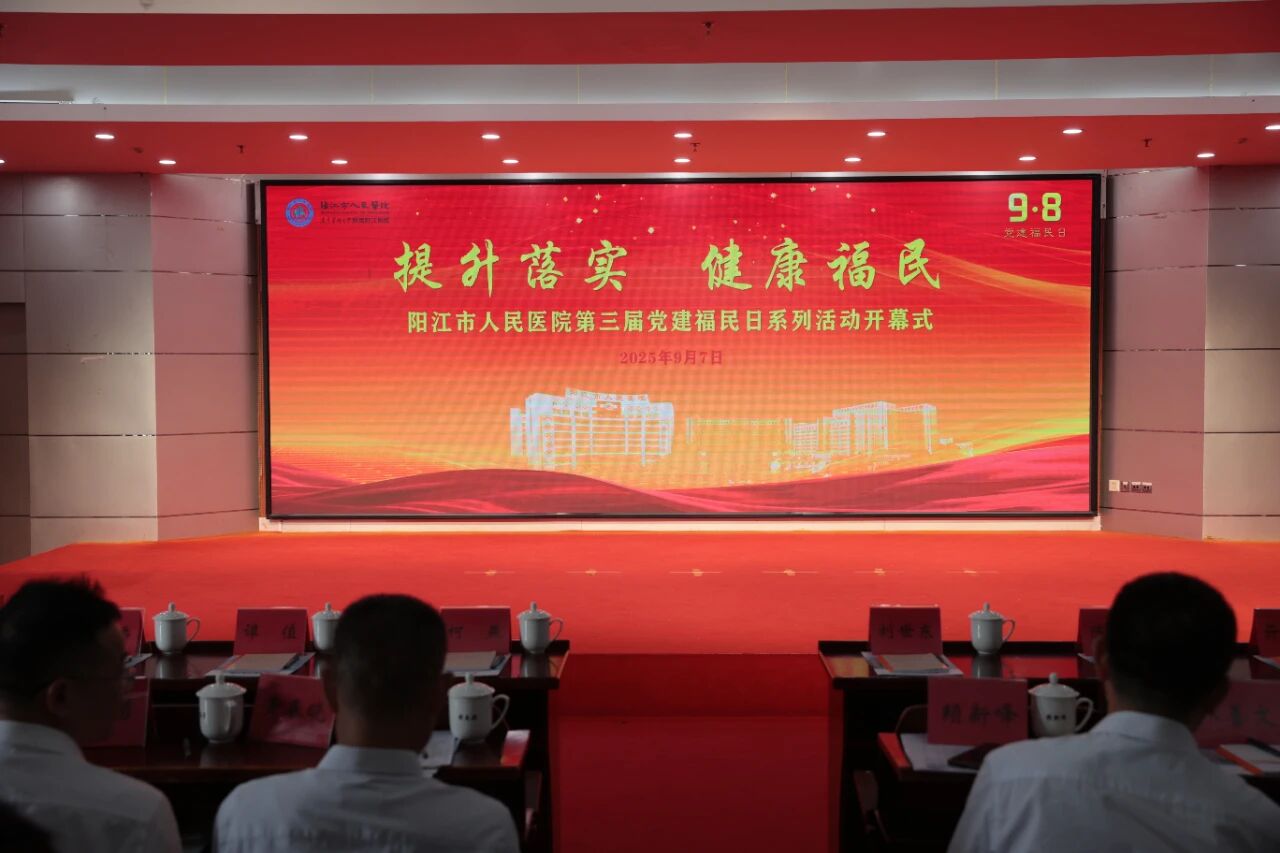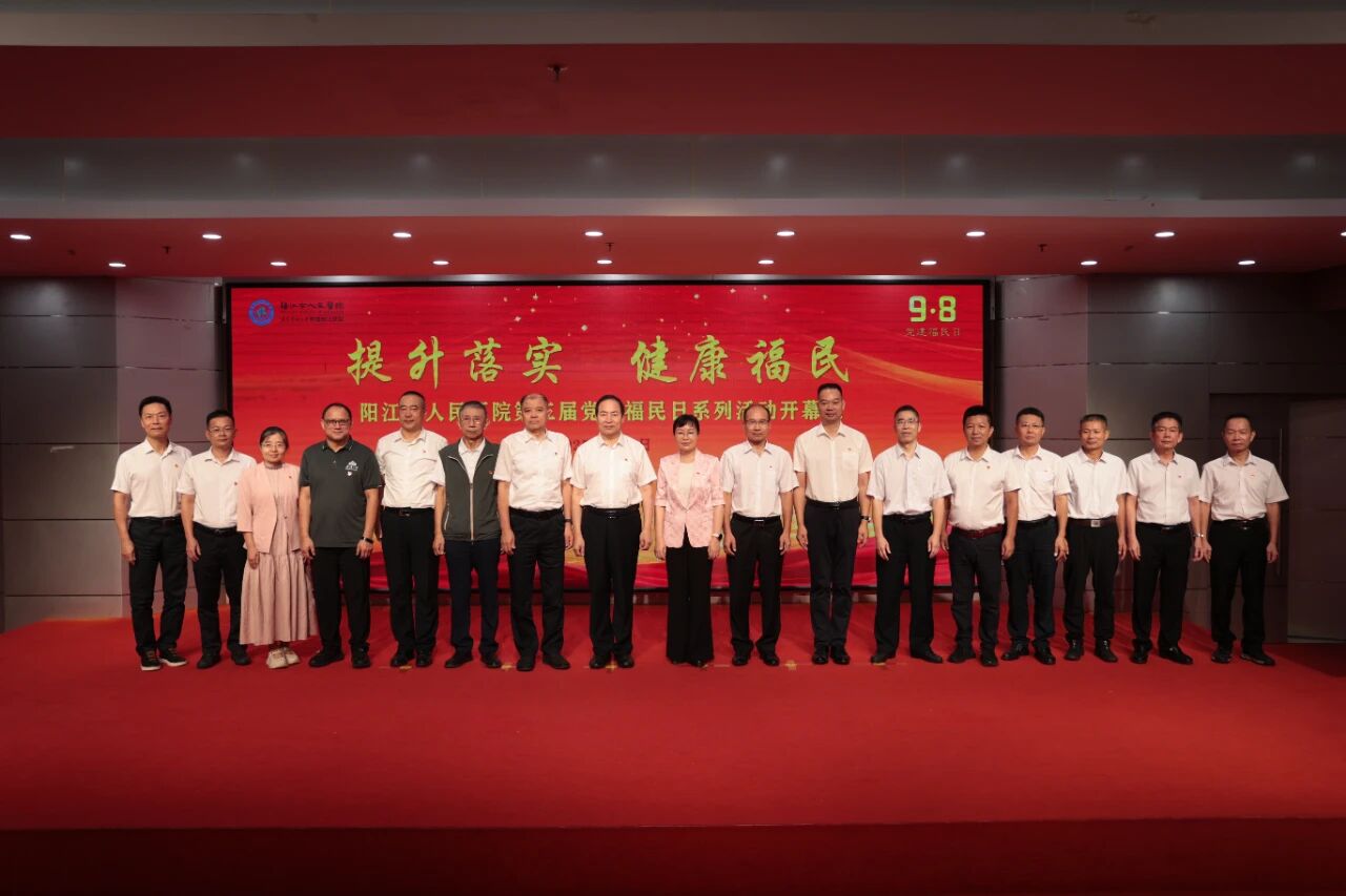 9月7日,阳江市人民医院举行第三届9·8党建福民日系列活动,本次活动以“提升落实,健康福民”为主题,旨在弘扬“为人民服务”精神,凝聚队伍力量,进一步擦亮医院“党建福民”党建品牌形象。中国卫生健康思想政治工作促进会副会长兼秘书长刘世东,省卫生健康思想政治工作促进会常务副会长陈祝生,省卫生健康思想政治工作促进会名誉会长亓玉台,市政府副市长柯燕,省委党校党建教研部主任、硕士生导师教授梁道刚,市委组织部常务副部长谭值,市卫生健康局党组书记、局长谢汝潘,武汉大学马克思主义学院教授肖光恩,南方医科大学通识教育部教授杨晓霖等领导嘉宾出席活动,我院党政领导班子成员,各党支部书记、支委,以及中层以上干部和入党积极分子等参加活动。