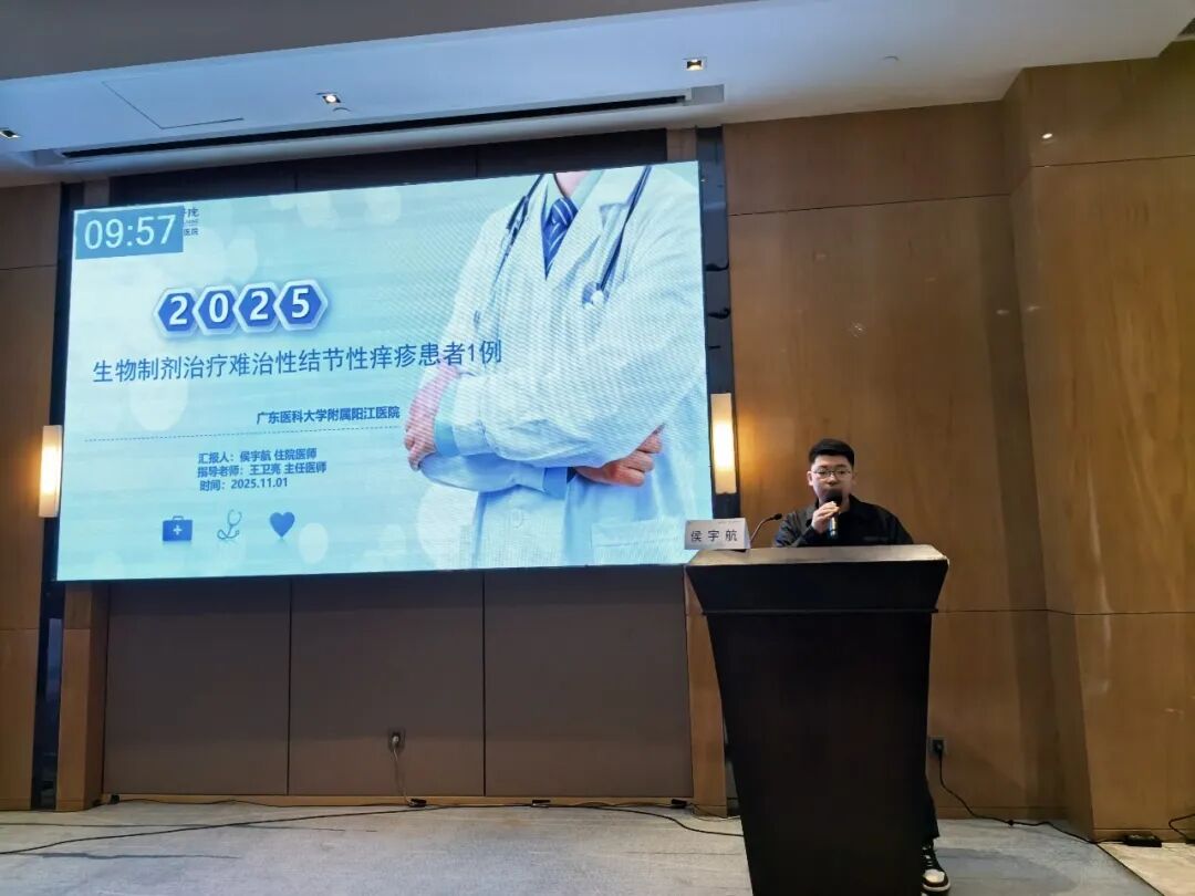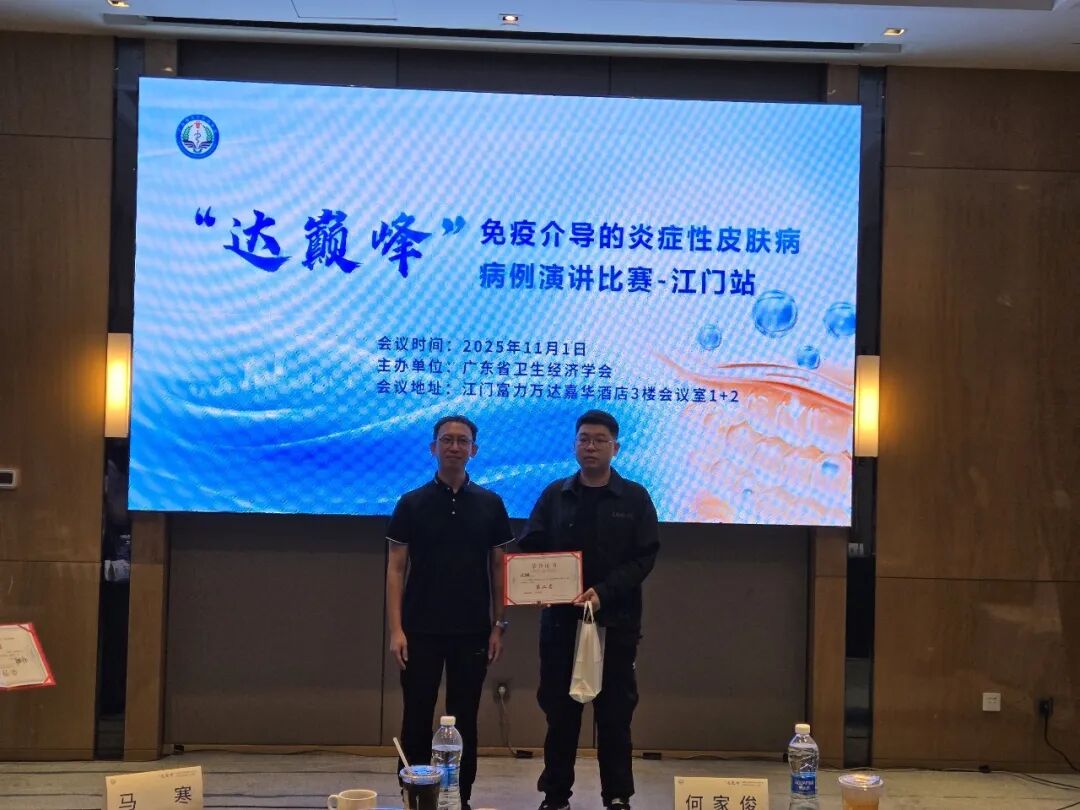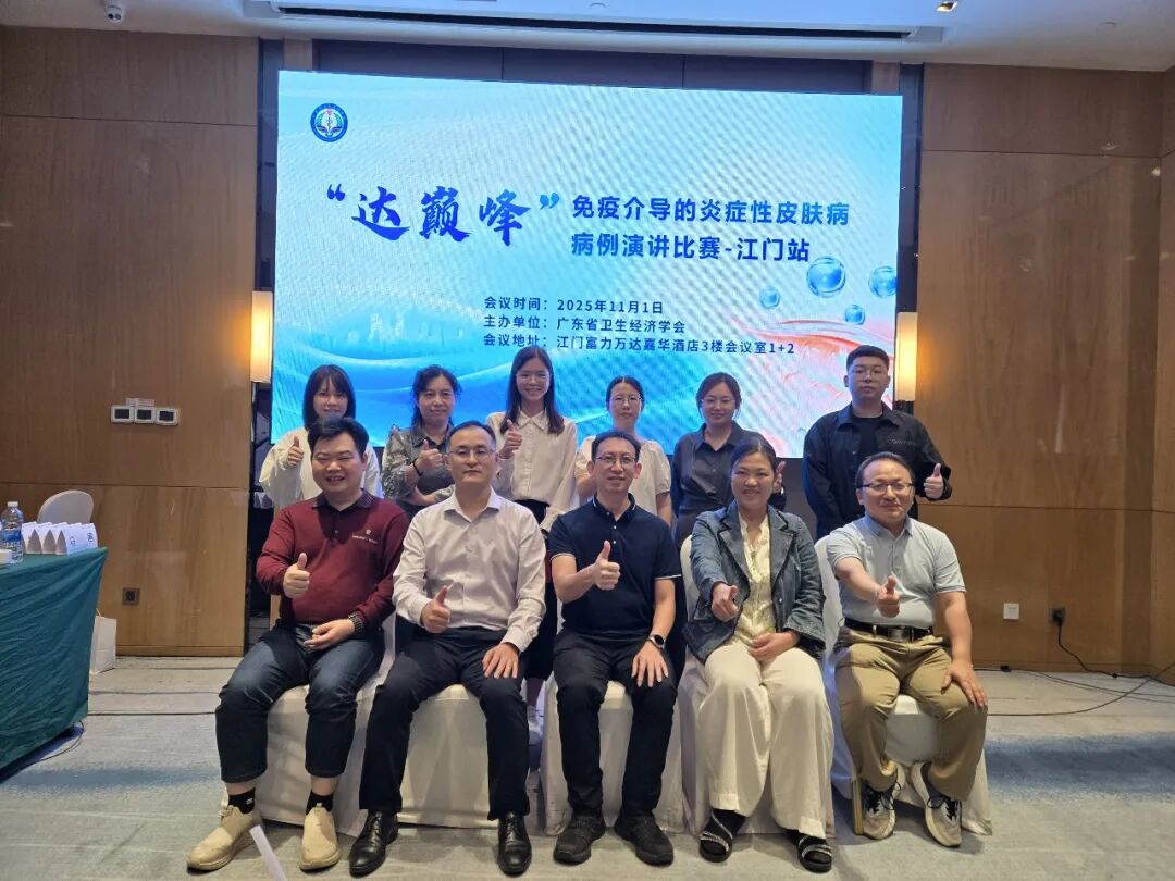 2025年11月1日,广东省医师协会皮肤科医师分会和广东省卫生经济学会皮肤病专委会联合主办的2025年“达巅峰”杯皮肤科青年医师演讲比赛暨免疫介导的炎症性皮肤病疑难病例演讲比赛-珠江西岸赛区在江门举行。本次比赛旨在为我省皮肤科青年医师人才培养搭建学术交流平台,锻炼和提升青年医师临床分析和综合诊疗能力。有助于推动我省皮肤学科发展,早日实现健康中国战略目标。本次比赛采用线下病例演讲的形式展开,邀请了省内知名教授担任点评嘉宾,包括中山大学附属第五医院马寒教授、广东医科大学附属医院吴玮教授、江门市中心医院何家俊教授以及我院皮肤科王卫亮主任等。