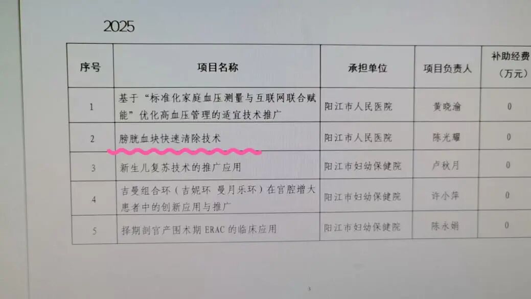 作为广东省卫生健康适宜技术推广项目,膀胱血块快速清除技术的基层落地,不仅为基层泌尿外科增添了高效诊疗工具,更降低了患者就医成本与转诊负担。阳江市人民医院将持续发挥技术辐射带动作用,推动更多优质医疗资源下沉,助力基层医疗服务能力提质升级,切实守护群众健康。